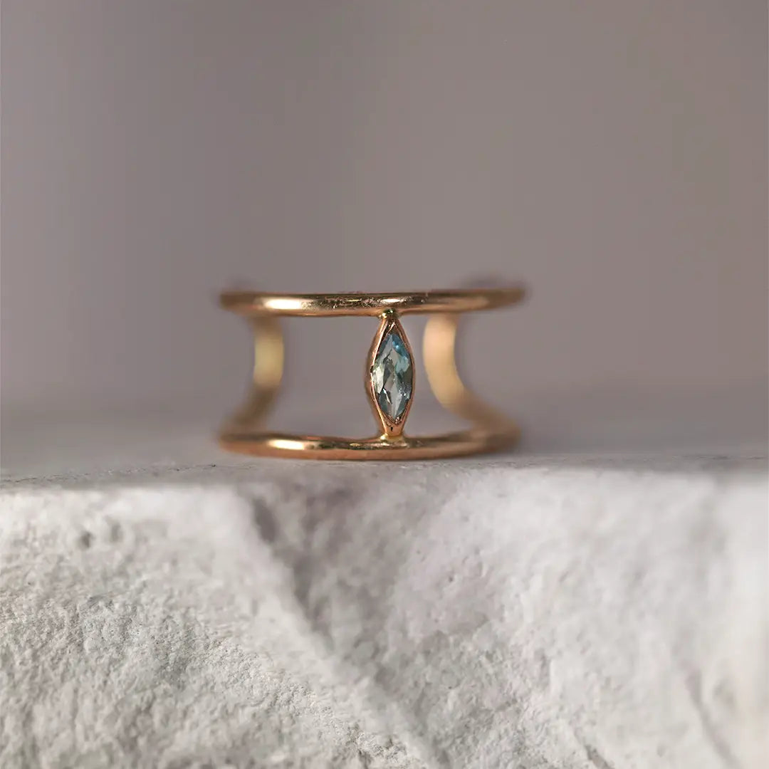 Ear Cuff de oro 18k, linda joya moderna y esencial para la Navidad. Se lleva sin perforación y destaca por el brillo puro de su topacio, símbolo de claridad y alegría para tus fiestas.