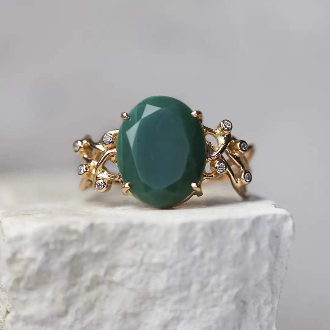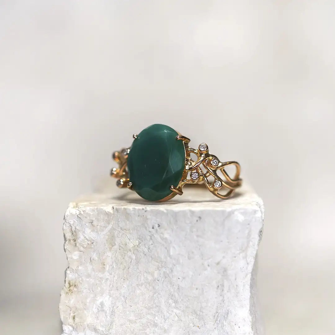 Anillo de Oro Madre Selva Oval Ópalo Andino y Diamantes 18K