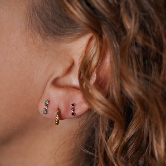 Estos delicados aretes pasantes de oro son parte de nuestra colección de piedras naturales cuidadosamente...