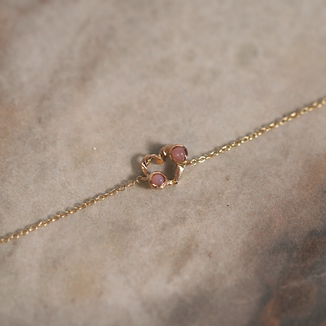 Este San Valentín, deja que el amor hable a través de los detalles más sutiles. Nuestra pulsera Mini Heart Petit fusiona la calidez eterna del oro de 18 quilates con la suavidad mística del Ópalo Rosa, una gema conocida por atraer la armonía y la paz del corazón.