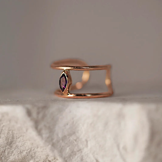 Discover the Alma ring with its double design, now enhanced with a deep violet Amethyst...