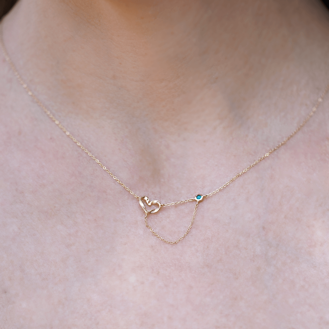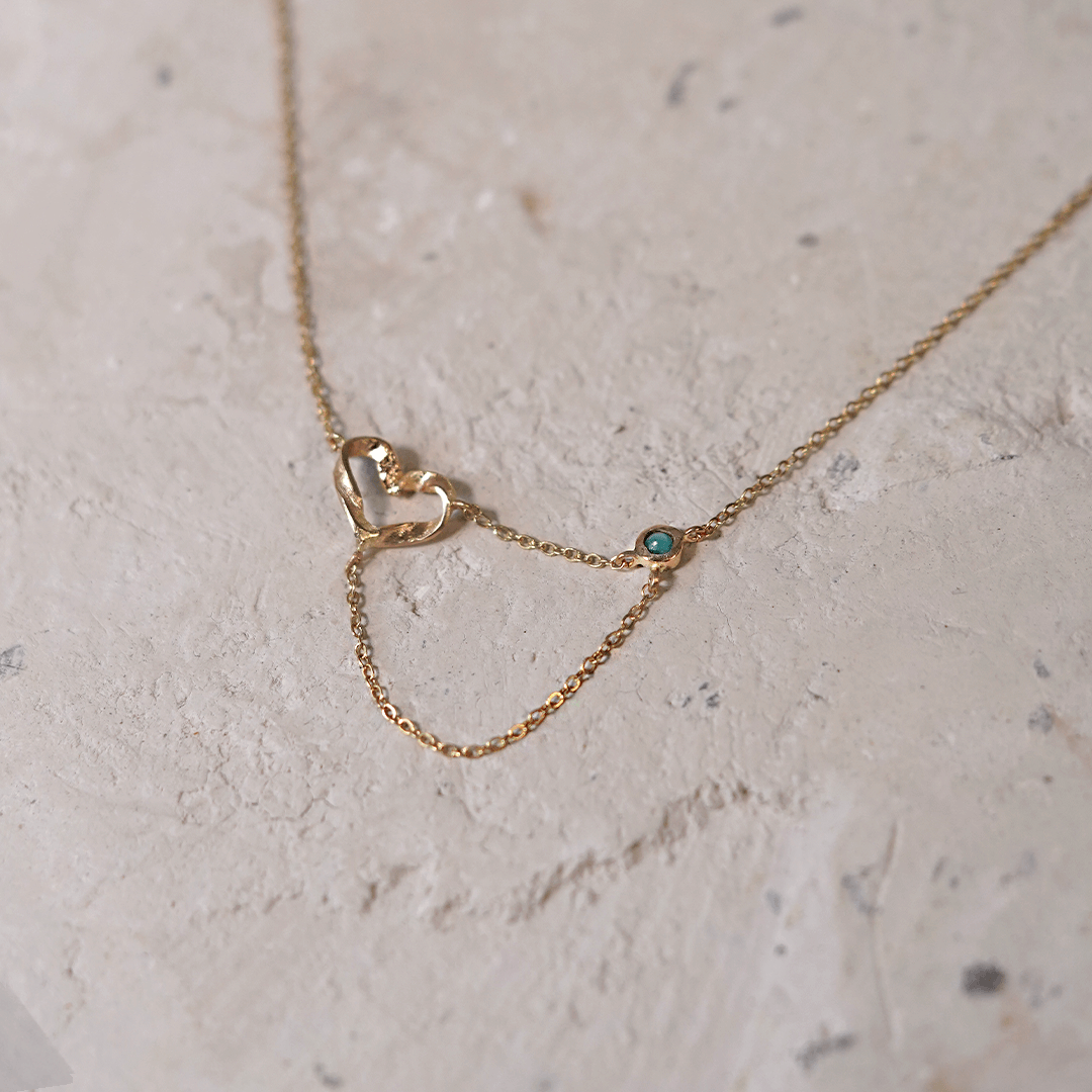 Collar Mini Heart Entrelazado en Oro 18K Ópalo Andino. Lujo sostenible y artesanía ética para un San Valentín inolvidable. Una joya elegante y consciente que simboliza el amor eterno y puro.